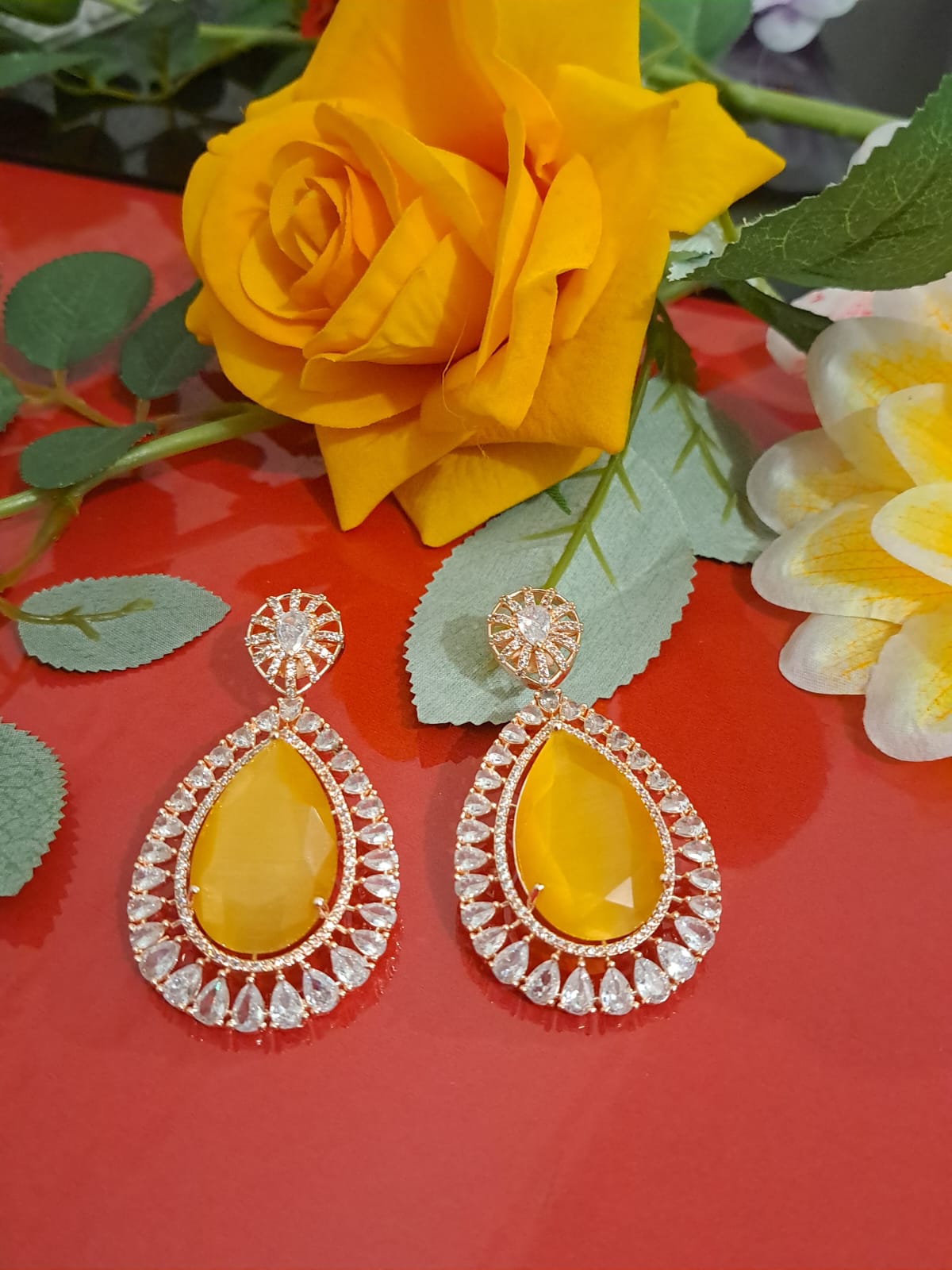 A Impressive Big Stone Drop Earrings decorated in American Diamond stones. This earring is 6-8 cm long. Shop for newest collections in partywear earrings, partywear jewellery. We are wholesaler from India, supplying worldwide. Order ready made jewellery or place your custom orders with us.