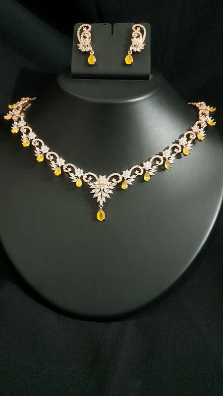 Beautiful Indian crafted American Dimond Necklace in high quality sparkling stones. World wide delivery at low cost. Gift your girl friend.