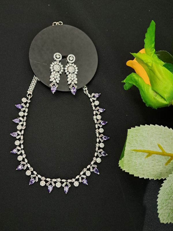 violet silver plated necklace for girls