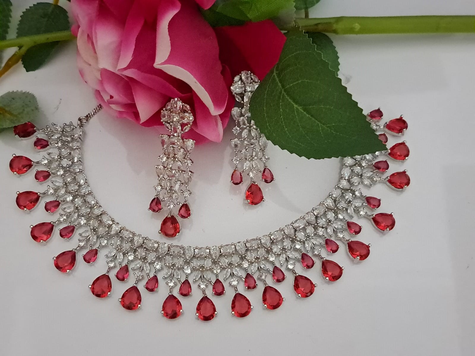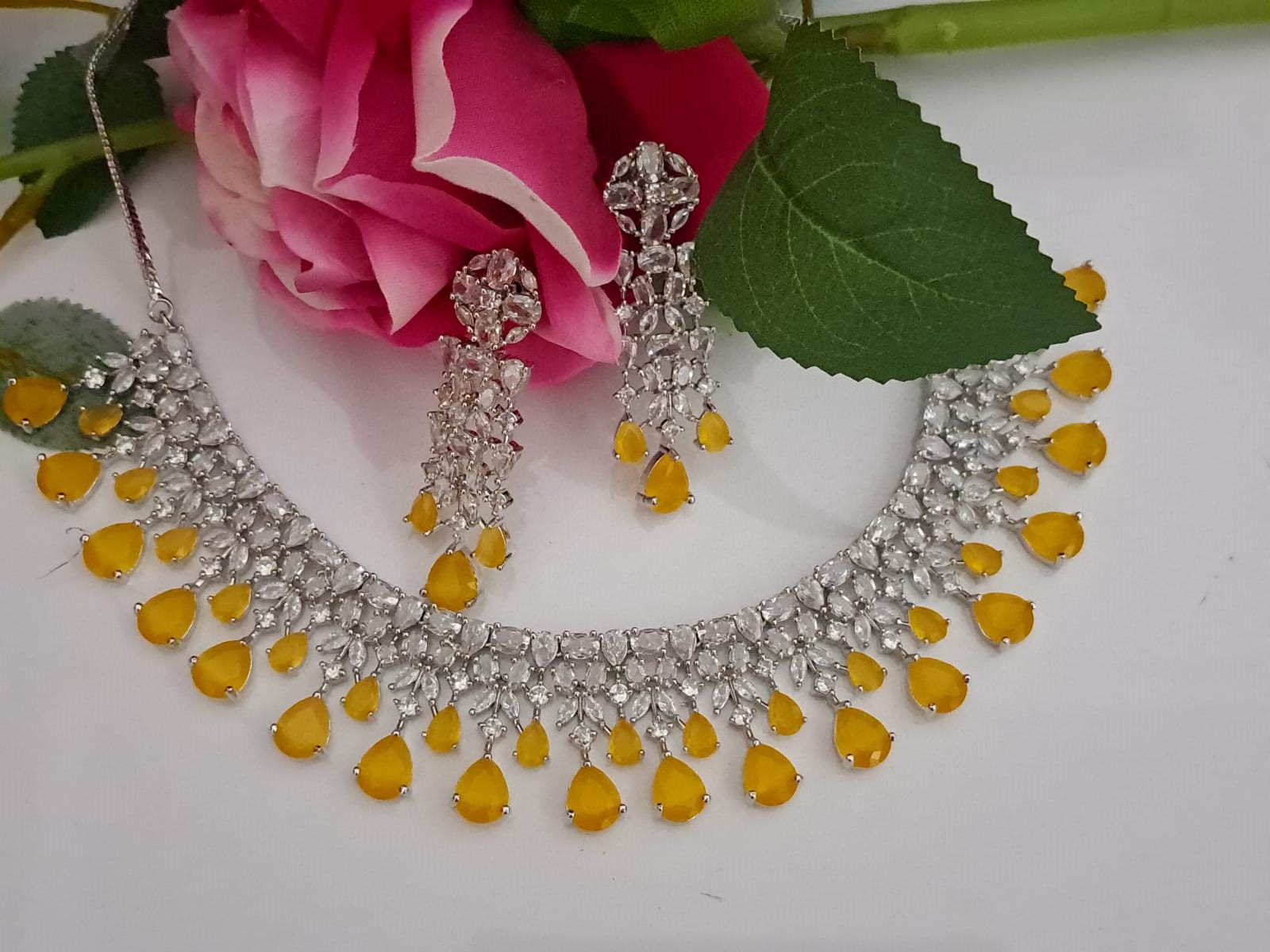 💎 Premium Materials: Our necklaces are crafted from high-quality brass and embellished with shimmering American Diamond stones for a luxurious bridal look.