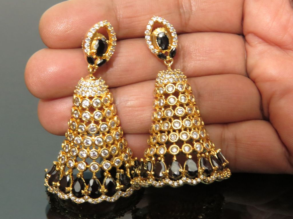 Half jhumki AD earrings black