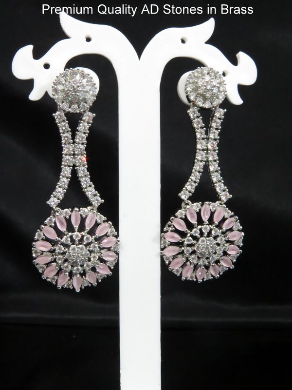 american diamond earrings pink