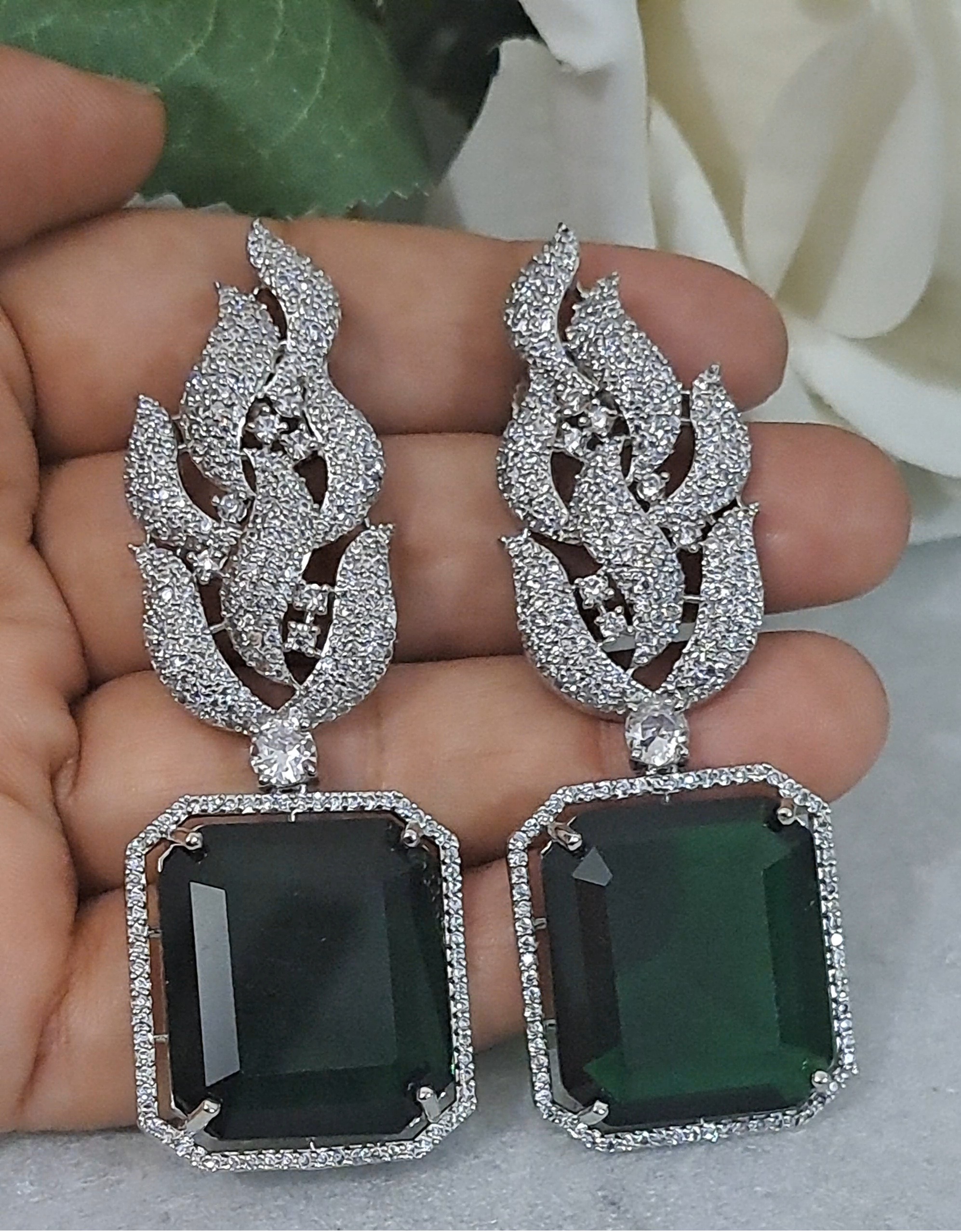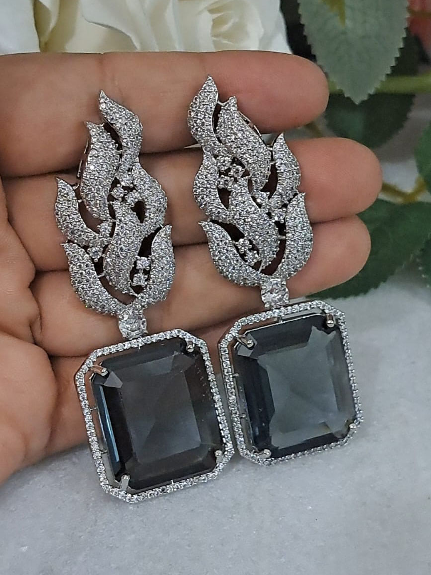 A Big Square Grey Color AD earrings for Wholesale