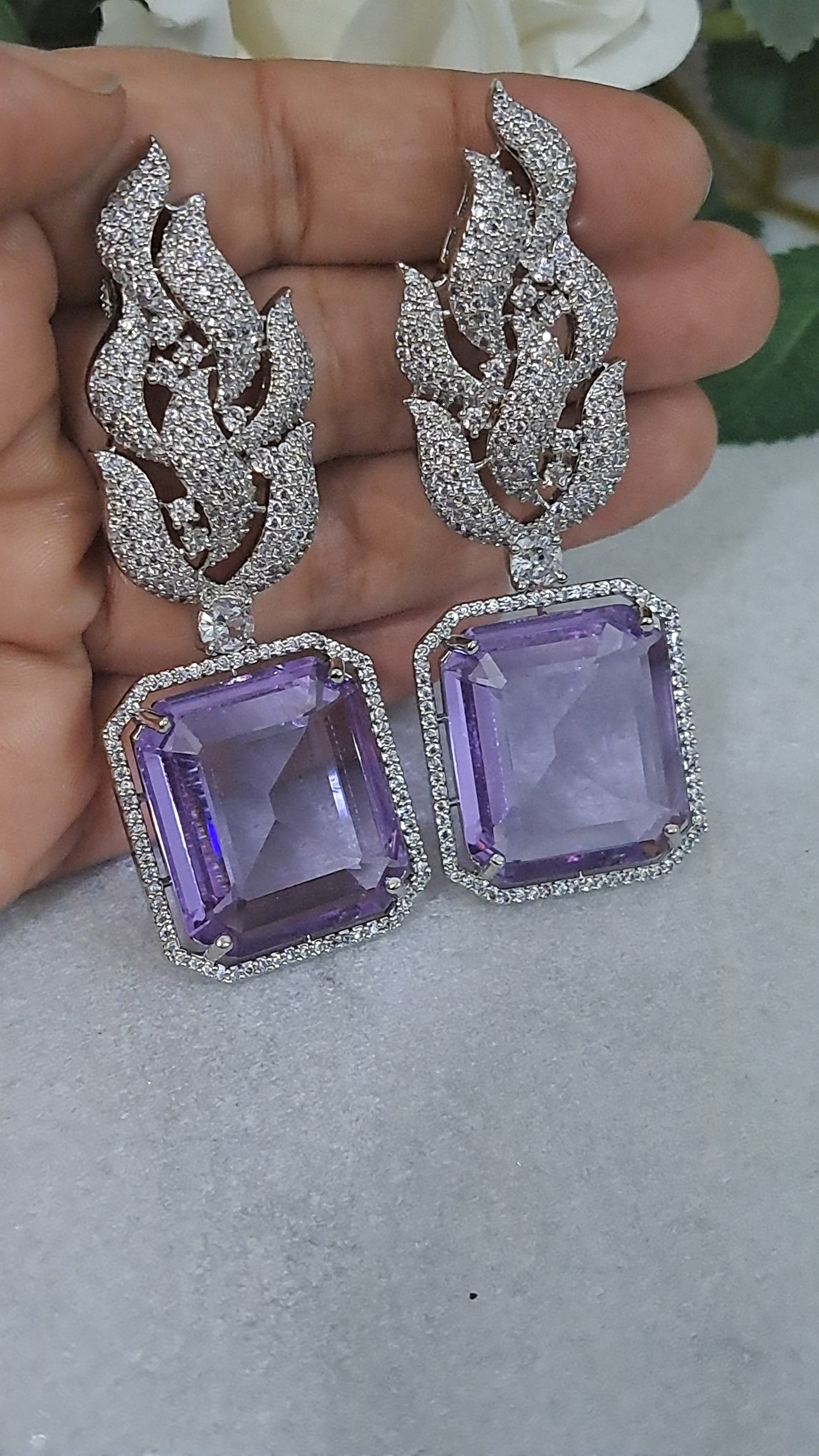 These Big Square Purple AD Earrings are a bold and stylish accessory perfect for wholesale distribution. Designed to stand out, they feature a large, eye-catching square shape in vibrant purple, complemented by sparkling AD (American Diamond) accents that add a touch of luxury. The combination of modern geometric design with the brilliance of AD stones makes these earrings a versatile choice for fashion-forward individuals looking to make a statement. Wholesale orders with different stone combination requirements are welcome. We can remake these designs in your color choices.