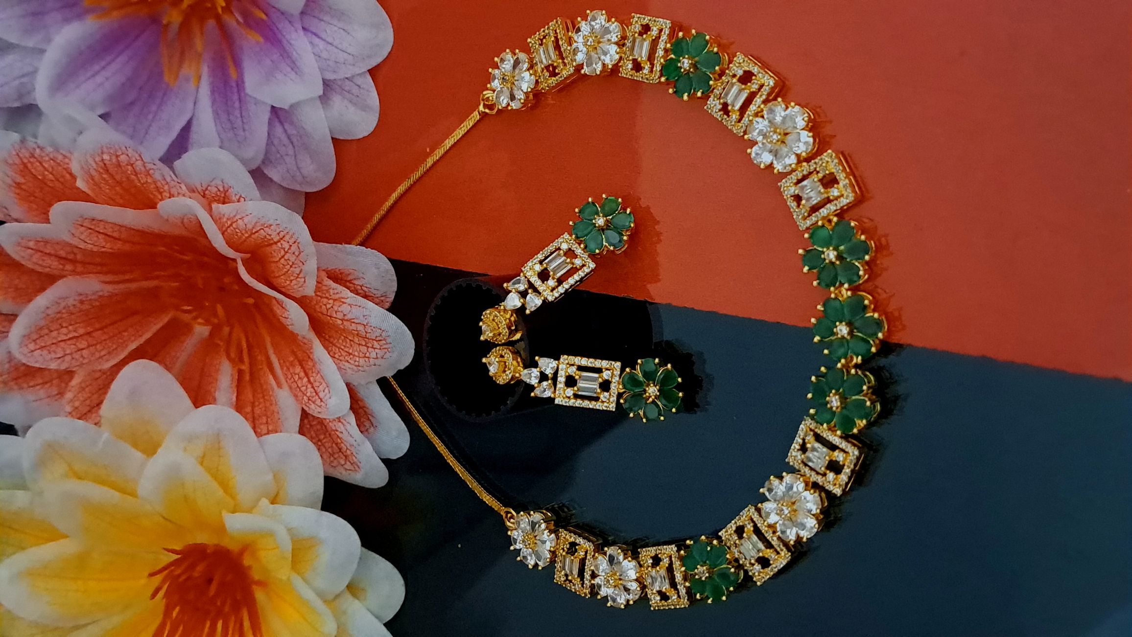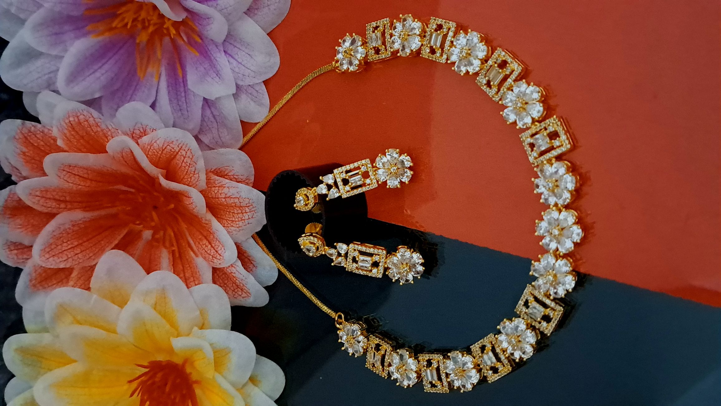 Buy the Best Offered Necklace set made in American Diamond in colorful combinations. Small Flowers used with drop shape stones in different colors. A best buy Wholesale Necklace for your boutiques if you are looking for good quality jewellery under 1000 or $25. We would recommend Our Necklaces to women looking for daily or official wear and cheap price. The pictures of the necklaces convey the quality we sell. StarDivine is known for providing Her customers the Best for Price. We sell single items for Personal Uses as well. We also sell wholesale. Enjoy Our Coupons for any order. We have attractive Offers for both Wholesale and for Personal Orders. The most attraction for Online Purchase from Us is our Free Shipping for Wholesale orders.