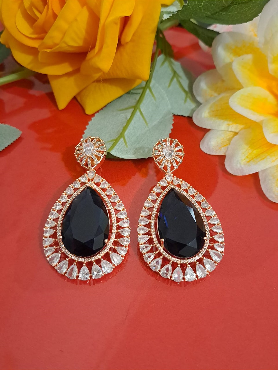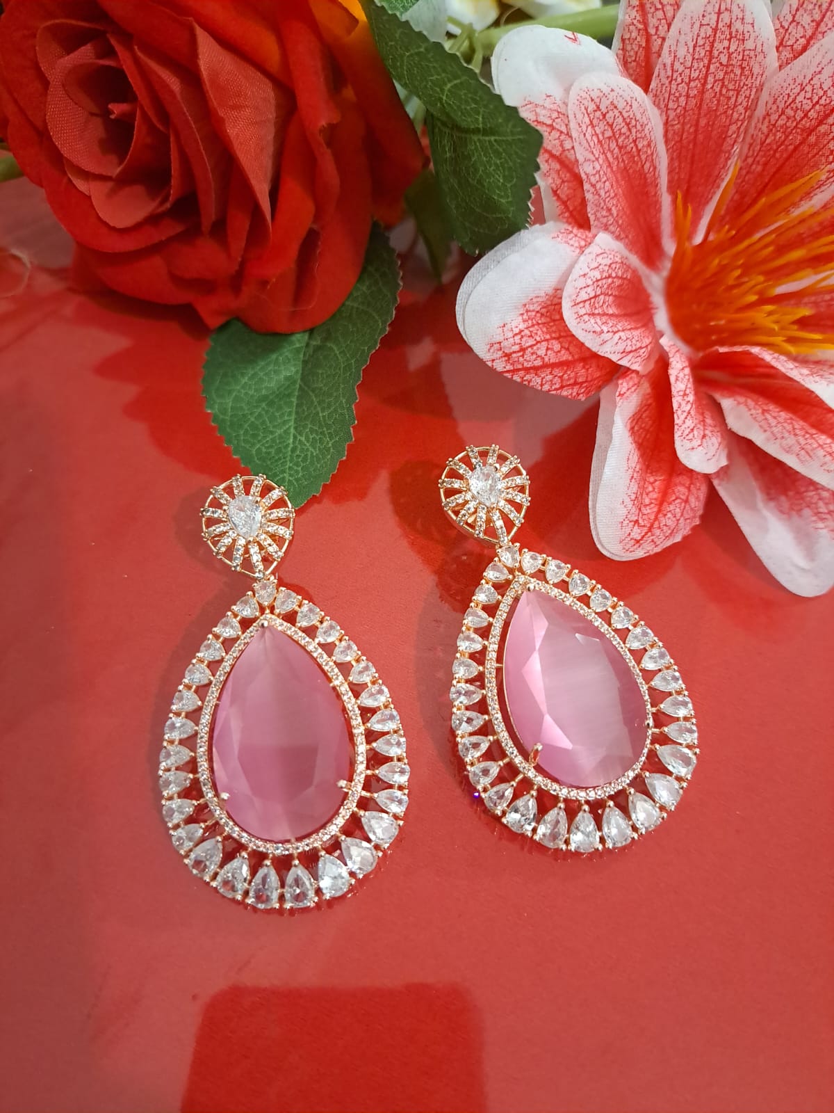 A Impressive Big Stone Drop Earrings decorated in American Diamond stones. This earring is 6-8 cm long. Shop for newest collections in partywear earrings, partywear jewellery. We are wholesaler from India, supplying worldwide. Order ready made jewellery or place your custom orders with us.