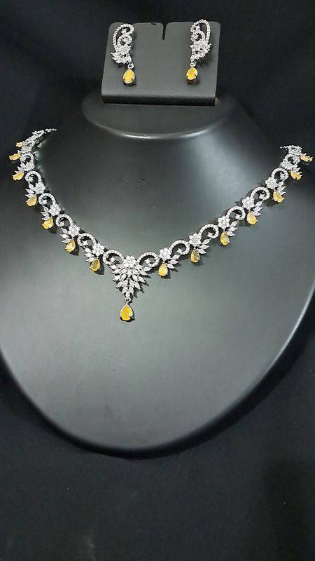 Beautiful Indian crafted American Dimond Necklace in high quality sparkling stones. World wide delivery at low cost. Gift your girl friend.