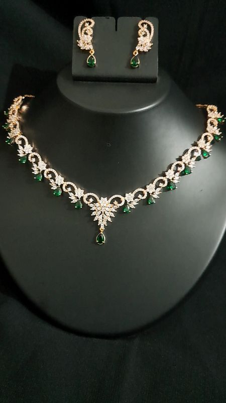 Beautiful Indian crafted American Dimond Necklace in high quality sparkling stones. World wide delivery at low cost. Gift your girl friend.
