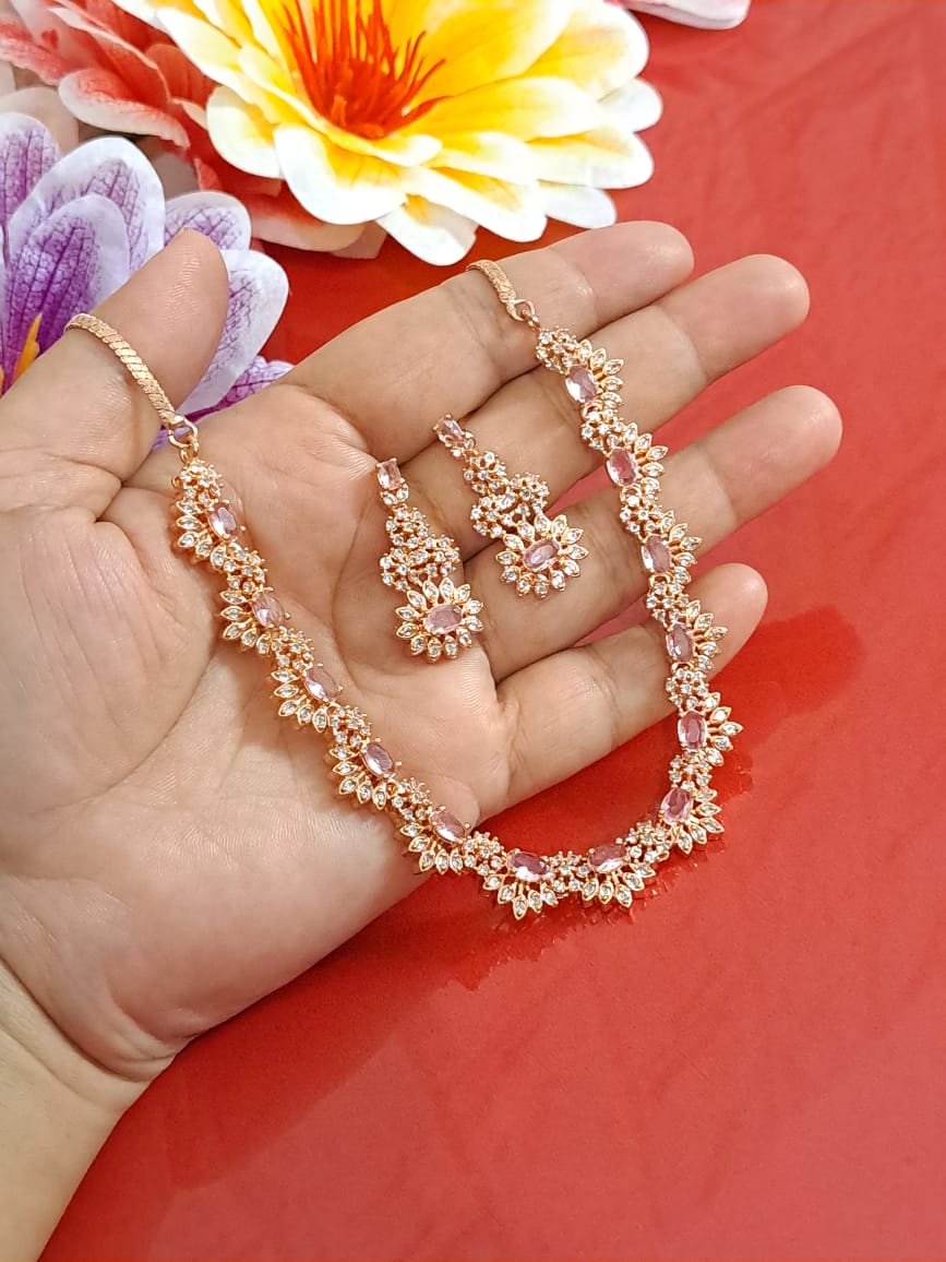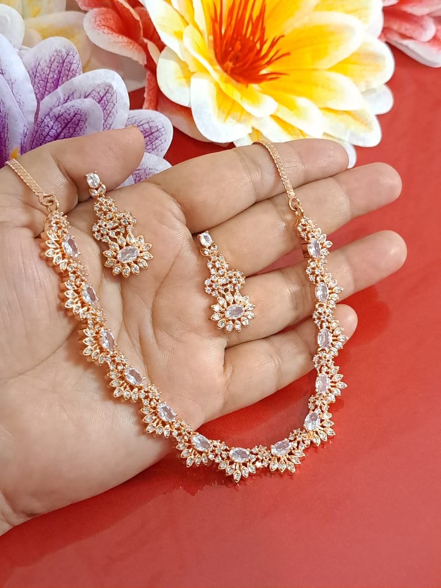 StarDivine Rose Gold American Diamond Budget Necklace